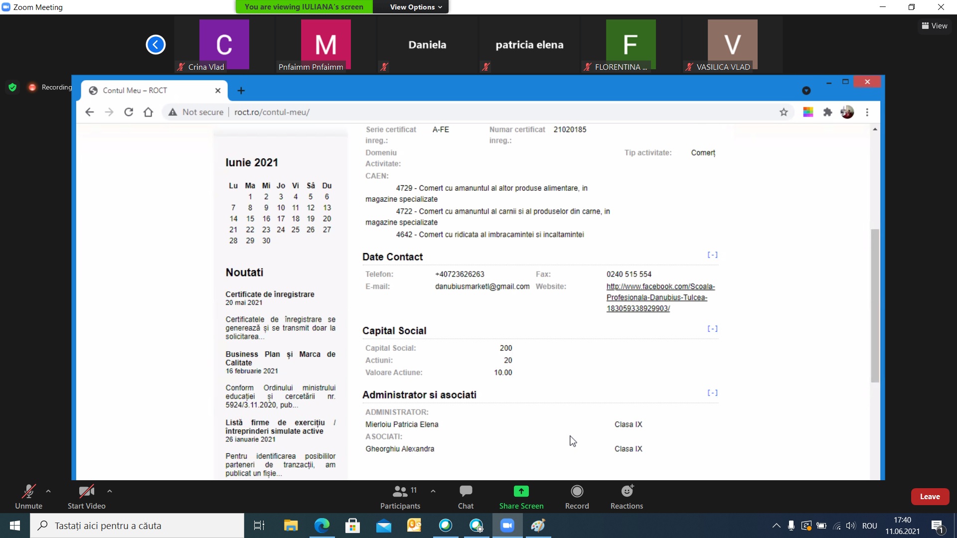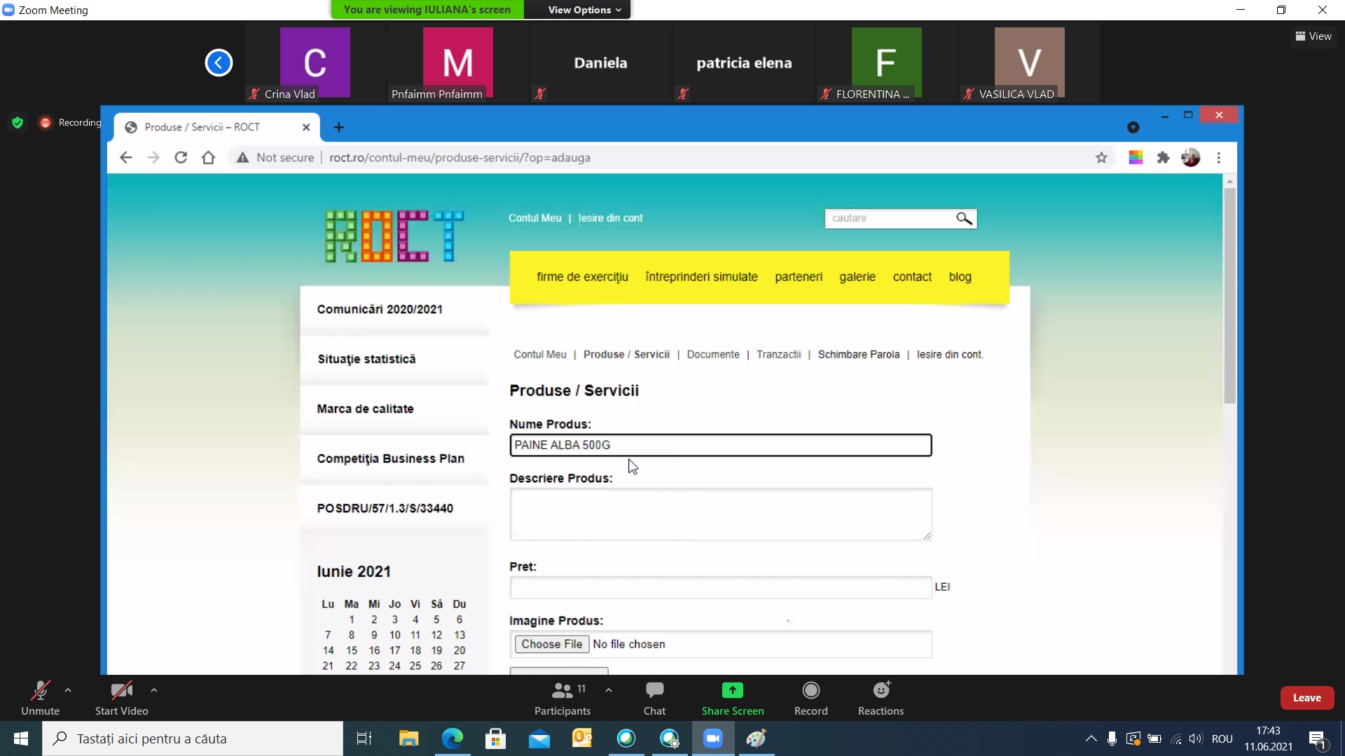 In data de 24.06.2021, elevii de la Scoala Profesionala Danubius, au avut o intalnire in cadrul platformei Zoom cu antreprenorii implicati in proiectul „Un viitor mai bun – Prin Educatie POCU/711/6/14”. Elevii au folosit platforma ROCT pentru a denumi, descrie si adauga produse in catalogul virtual al firmei de exercitiu infiintate.