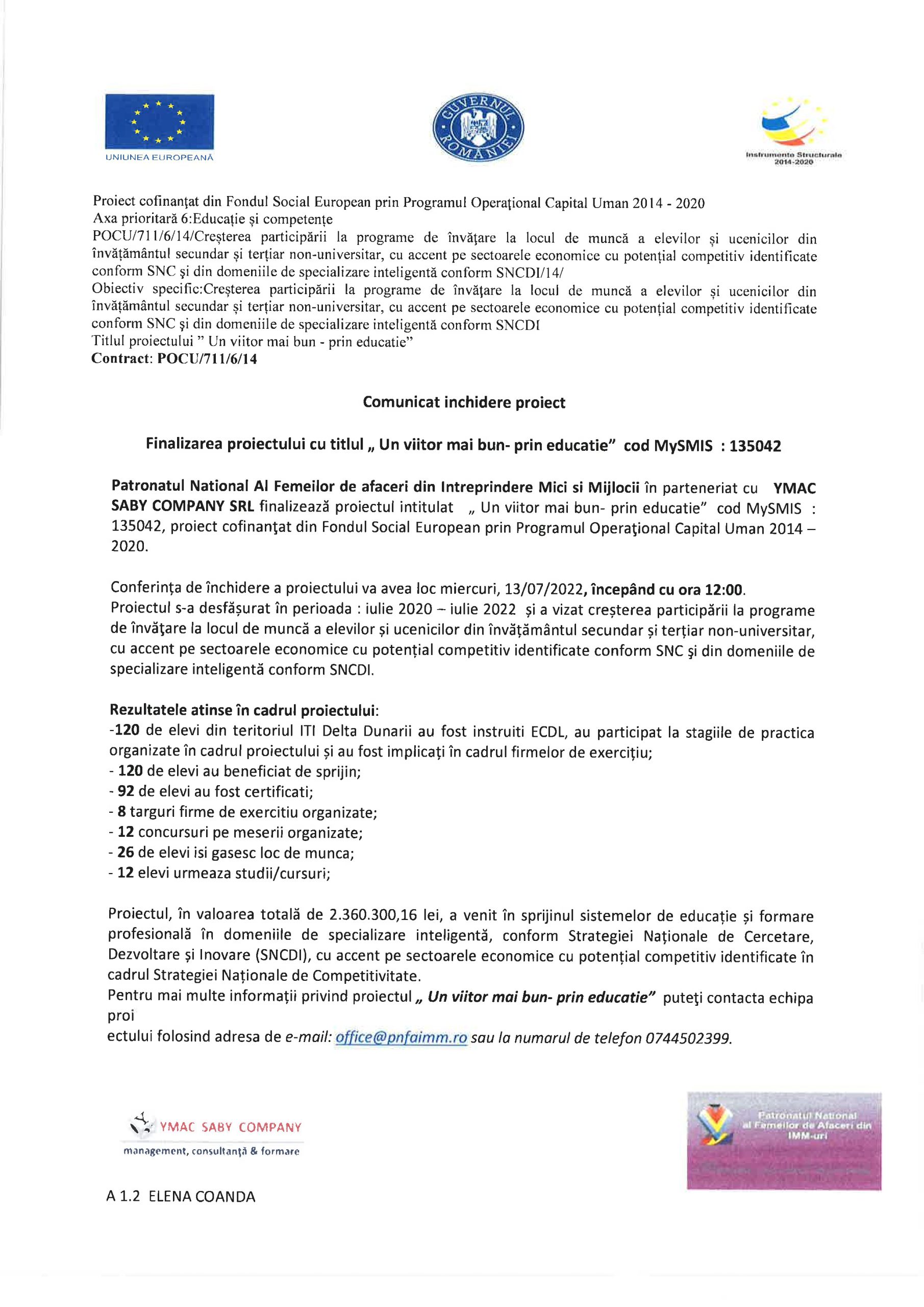 09 Mai 2022 – o zi cu semnificații multiple, Ziua Portului Românesc, Ziua Europei, Ziua Independenței de Stat a Romaniei, Ziua Victoriei în cel de-al doilea Razboi Mondial, o zi pe care PNFAIMM a sărbătorit-o prin implicarea în comunitate, participând la Targul Firmelor de exercițiu „Invățăm, Inovăm și Câștigăm” – din cadrul proiectului „Un Viitor mai bun prin Educație”.