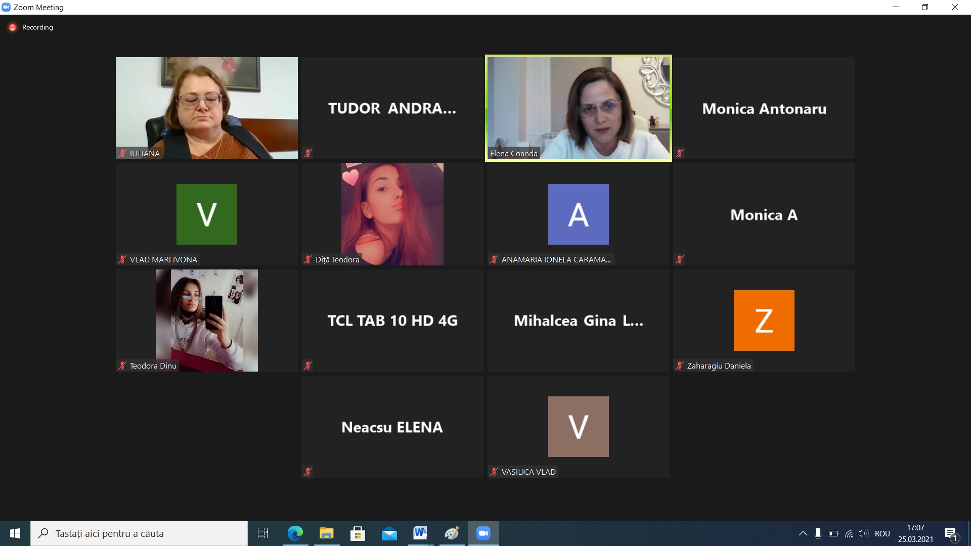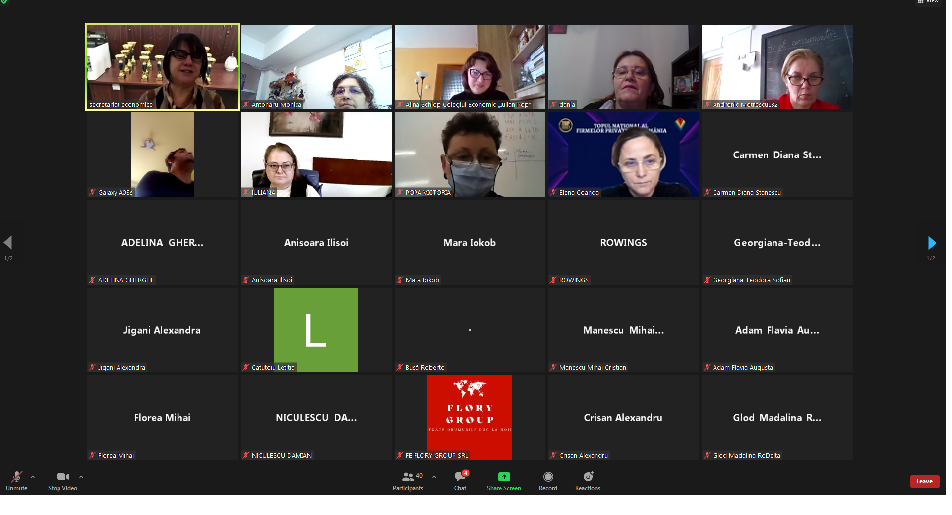 In data de 04.03.2021 si 05.03.2021, in cadrul platformei ZOOM, au avut loc doua sedinte cu beneficiarii proiectului „Un viitor mai bun prin educatie” si antreprenorii implicati in acest proiect. Scopul acestei intalniri a fost cunoasterea elevilor din cadrul ŞCOLII PROFESIONALE “DANUBIUS” TULCEA , respectiv Liceul Tehnologic “Mihai Viteazul”.In cadrul acestor sedinte s-au purtat discutii legate de procedura de infiintare a firmelor de exercitiu la ROCT , documentele necesare, precum si alegerea denumirii acestor firme.
