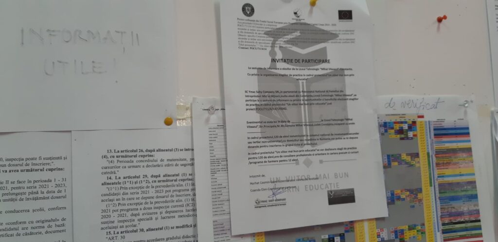 Elevii de la Liceul Tehnologic Mihai Viteazul continua activitatile din cadrul proiectului – „Un viitor mai bun – Prin Educatie!” si impreuna cu responsabilii de proiect, au realizat cataloage de promovare a serviciilor si produselor firmelor de exercitiu. De asemenea, acestia au fost incurajati sa participe la toate activitatile desfasurate in cadrul proiectului si sa beneficieze atat de instruirea si indrumarea in domeniul competentelor digitale cat si de stagiile de practica desfasurate la diversi agenti economici.