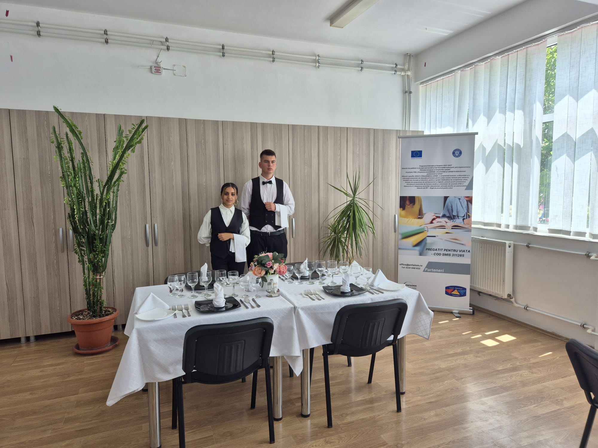 Sâmbătă, 14 iunie, a fost organizată prima campanie de informare din cadrul proiectului „Pregătit pentru viață” – cod SMIS 311265, dedicată promovării formării prin practică și a orientării profesionale timpurii în domeniul ospitalității.În cadrul evenimentului, dialogul deschis cu invitații – specialiști din industrie, cadre didactice și parteneri implicați – a evidențiat rolul major al stagiilor de practică în dezvoltarea competențelor reale ale elevilor și în facilitarea tranziției acestora de la școală către piața muncii.Campania de informare urmărește creșterea gradului de conștientizare în rândul tinerilor, părinților și angajatorilor cu privire la oportunitățile oferite de formarea profesională duală, punând un accent deosebit pe rolul esențial al stagiilor de practică în dobândirea de competențe relevante, adaptate cerințelor pieței muncii. Acestea reprezintă o punte concretă între teorie și practică, contribuind decisiv la dezvoltarea profesională timpurie și la integrarea eficientă în industria ospitalității. Proiect derulat de PNFAIMM în parteneriat cu Liceul Tehnologic „Dobrogea” Castelu.