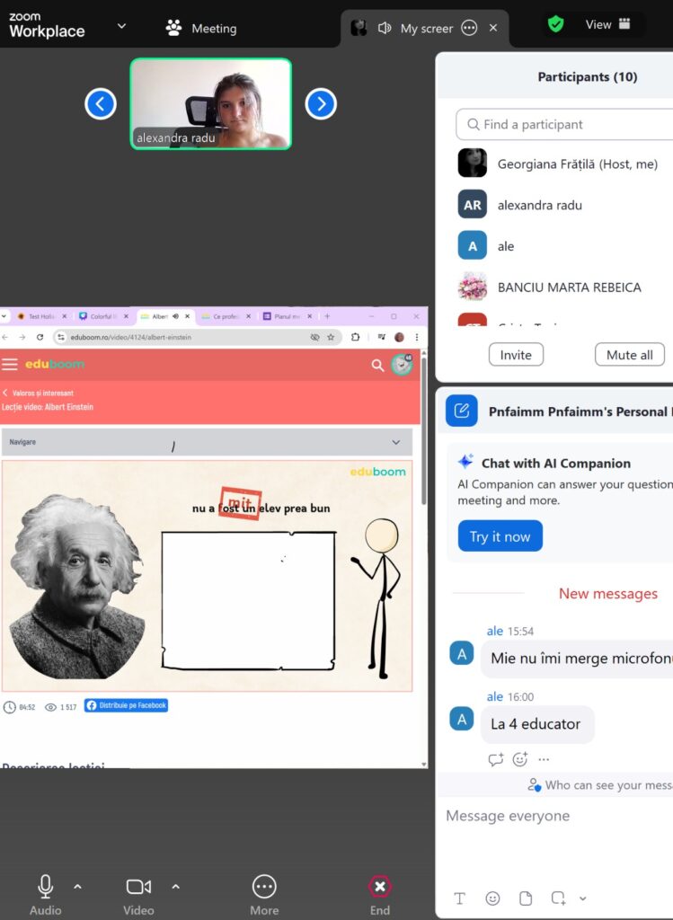 Întâlnirea a avut un caracter aplicat și colaborativ, vizând asigurarea unei implementări coerente și eficiente a etapelor următoare, cu scopul de a sprijini formarea și dezvoltarea tinerilor prin metode moderne și accesibile de învățare.